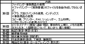 |実務基礎:基本的な挨拶や言葉遣いの学習から、作業ではファイリングの仕方からハサミ、カッターナイフ等様々な事務用具の使いこなしまで学びます。