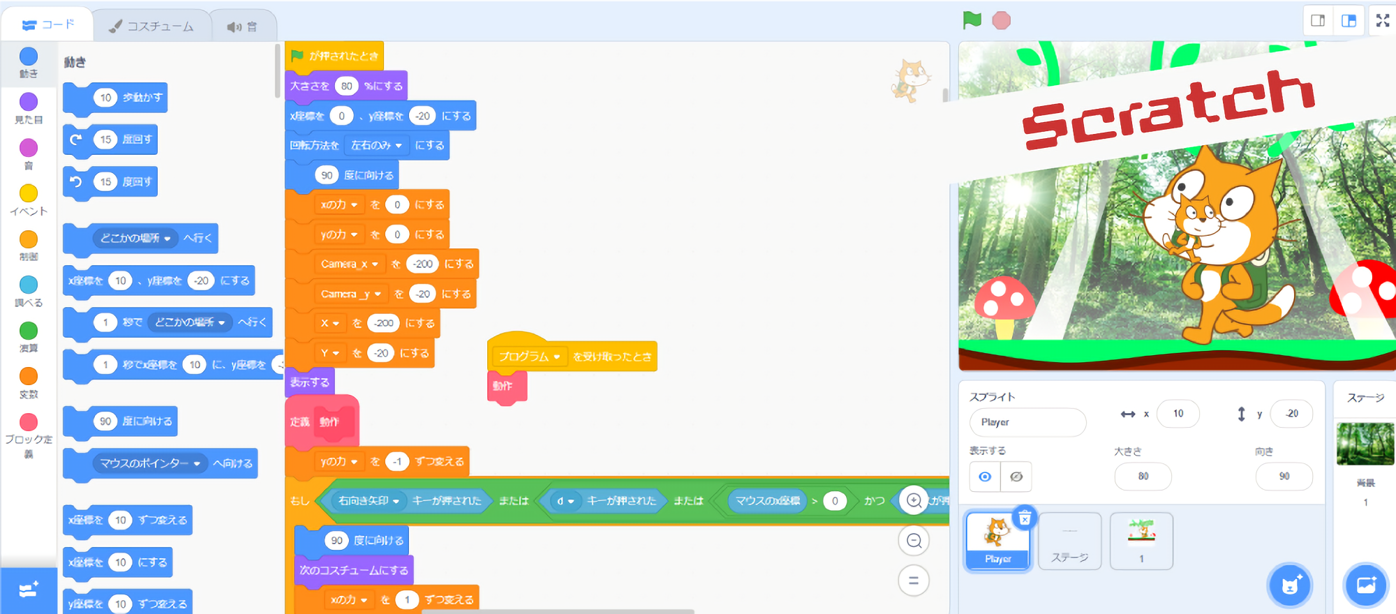 Scratchとは:複雑な知識は必要なくカラフルなブロックを配置するだけでアニメーションやゲームがプログラミングできる優れモノです!